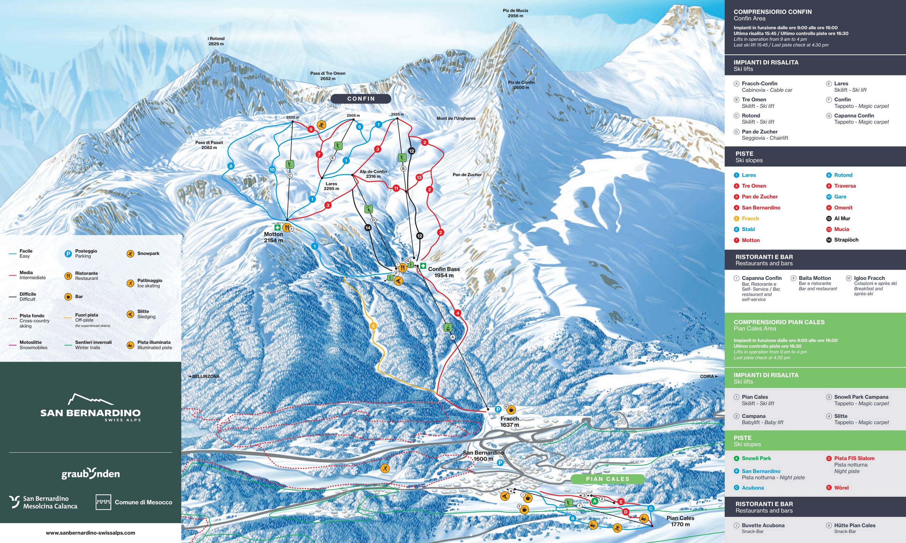 Plan des pistes Pian Cales – San Bernardino Saison 2025/2026