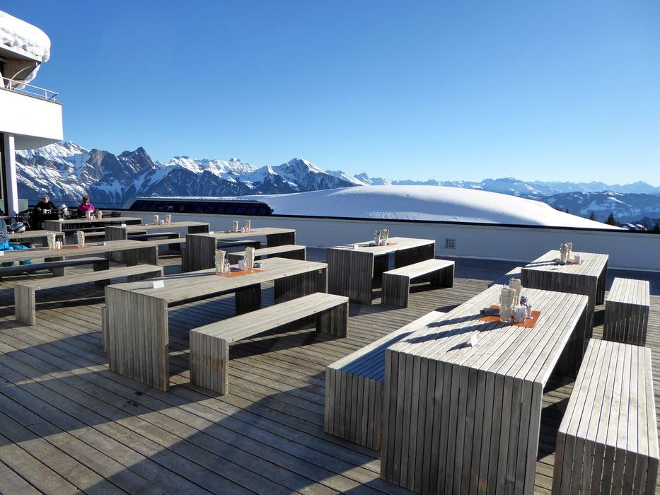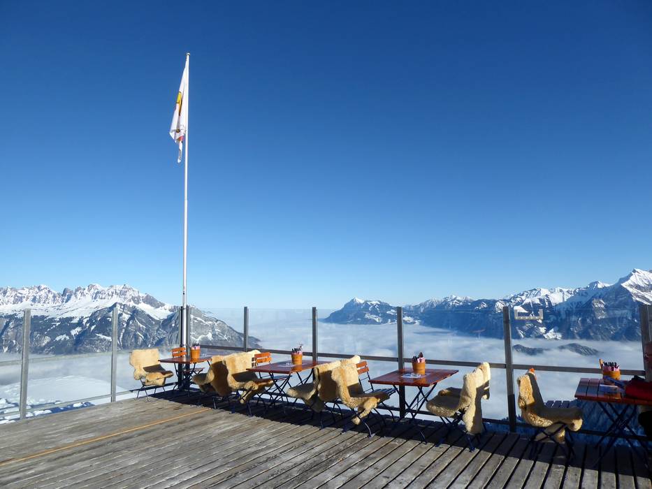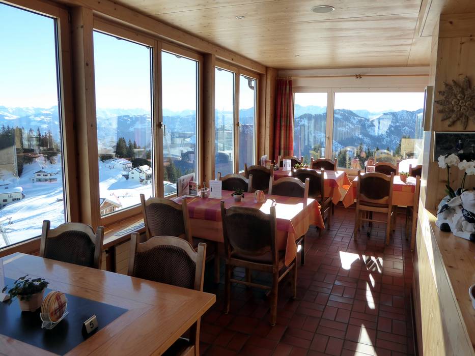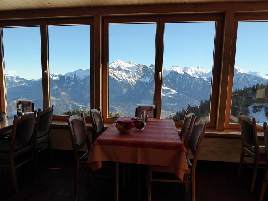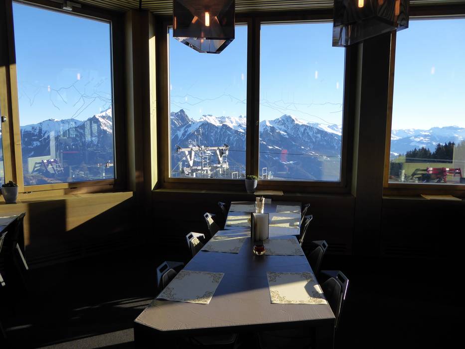Depuis la terrasse ensoleillée, vous profitez d'une vue unique sur les Alpes des Grisons, de Glaris et d'Autriche. Une cuisine traditionnelle y est servie.