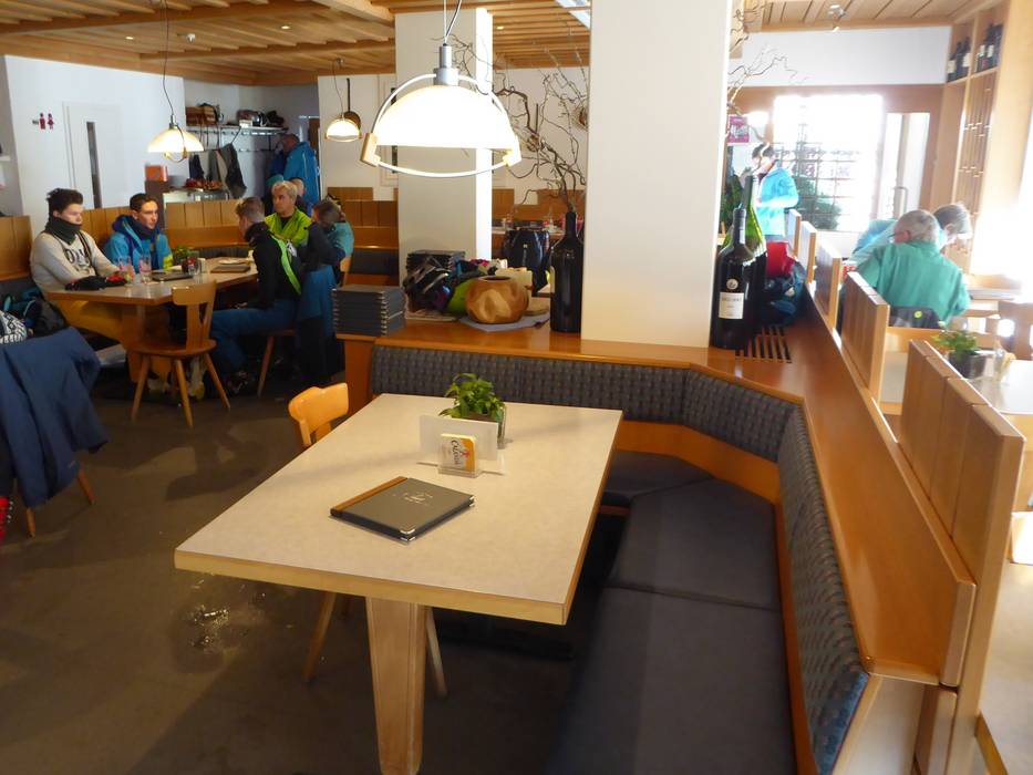 Depuis la terrasse ensoleillée, on profite d'une vue panoramique magnifique sur les Alpes. Les spécialités sont les saucisses grillées, les soupes et la viande séchée.