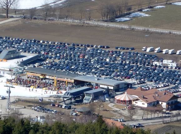 L’arrivée sans voiture est idéale. La gare de Perca offre un accès direct au domaine skiable. Des skibus gratuits circulent régulièrement.