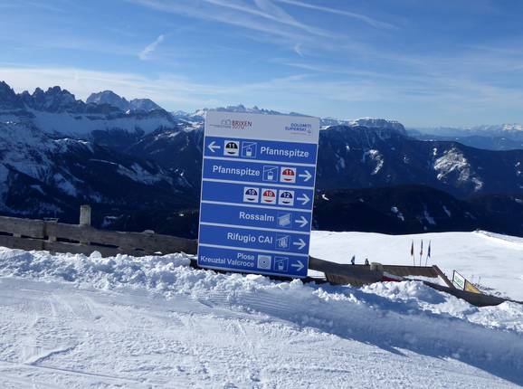 Indications de directions (plans, panneaux informatifs, signalisation) et sécurité sur le domaine skiable Plose – Brixen (Bressanone)