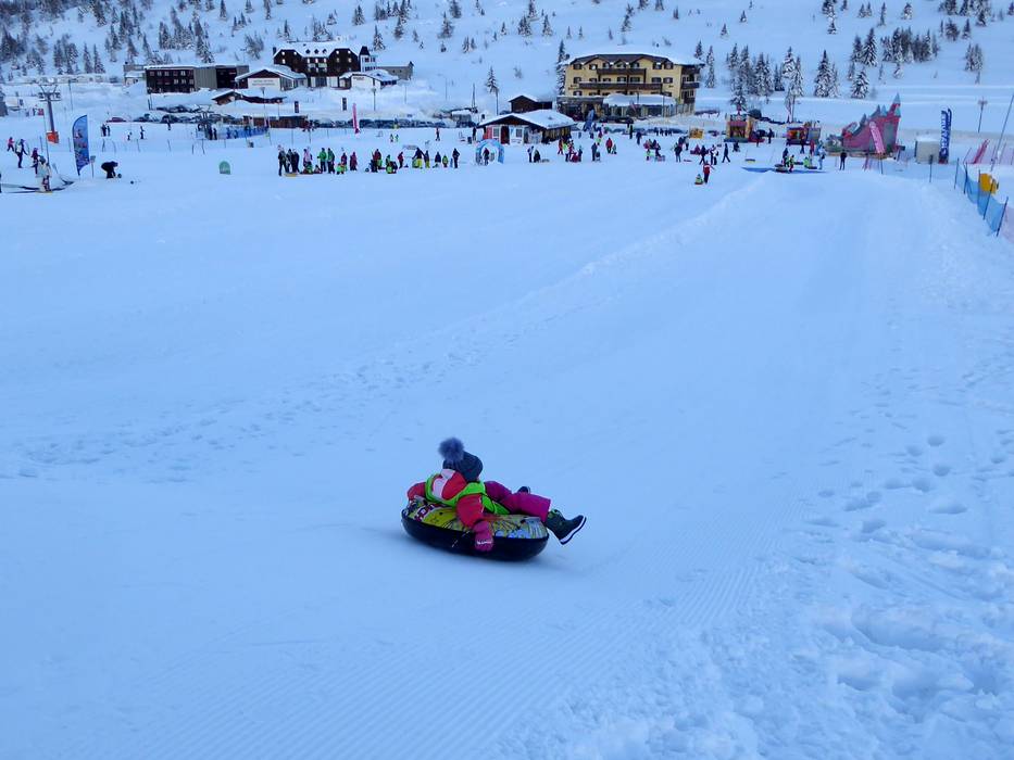 Le snow tubing est un grand plaisir. La piste se trouve au Passo Tonale, près de La Baracca.