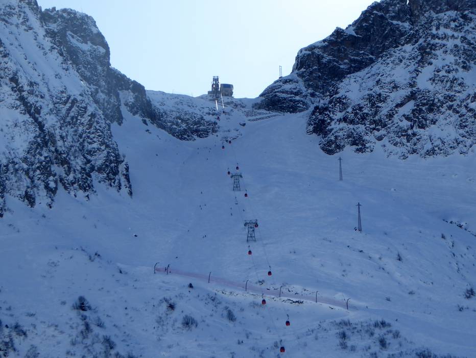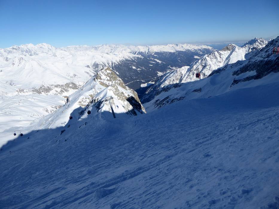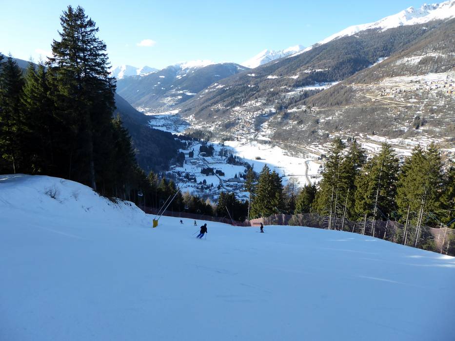 La piste noire descend du Passo Paradiso en pente raide vers la vallée. Elle est desservie par la télécabine Paradiso.
