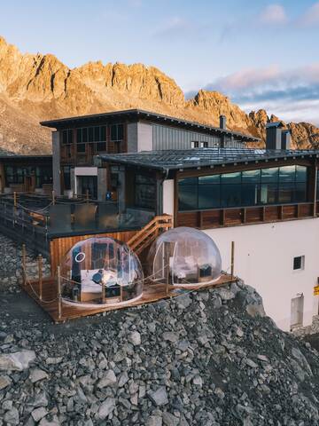 Le refuge de montagne Capanna Presena est situé au pied du glacier Presena, à une altitude de 2753 mètres. Des sommets enneigés et le calme entourent le refuge dans un paysage unique. L'intégration harmonieuse dans l'environnement et l'architecture intérieure offrent des vacances de très haut niveau. Des plats régionaux et des vins de la plus haute qualité sont proposés. Le point fort est l'espace bien-être "Mountain Lodge Spa Capanna Presena". L'hébergement n'est accessible qu'en télécabine. Ainsi, le matin, vous êtes le premier sur les pistes du domaine skiable Passo Tonale.