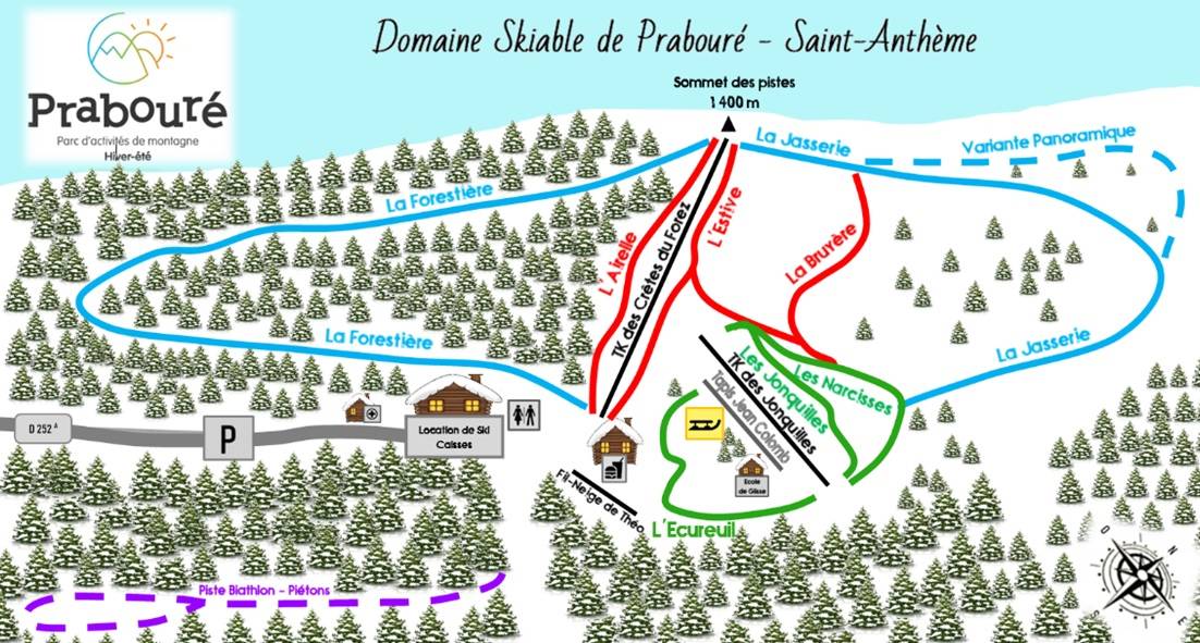 Plan des pistes Prabouré – Saint-Anthème Saison 2024/2025