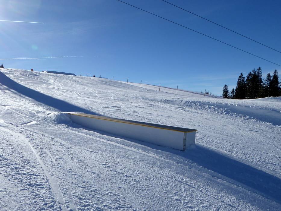Le petit snowpark de la Kemahdhöhe propose des kickers et des boxes, idéals pour les débutants en freestyle.