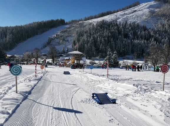 À Ramsau am Dachstein, il n'y a pas de snowpark ni de halfpipe. De petits obstacles et des pistes à vagues sont répartis dans le domaine skiable.