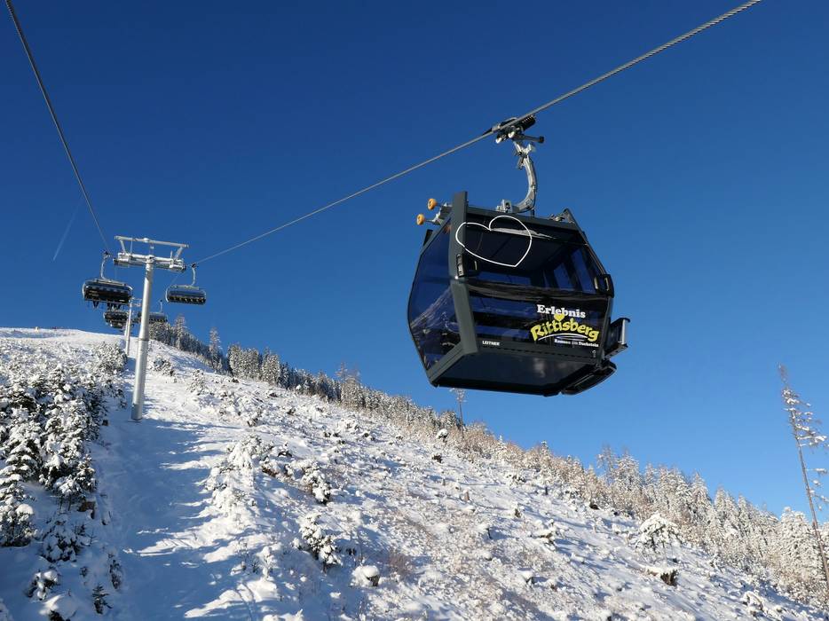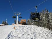 Téléphérique monocâble composé de sièges à 6 places et de cabines à 10 places