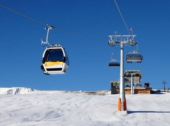 Téléphérique monocâble composé de sièges à 6 places et de cabines à 8 places