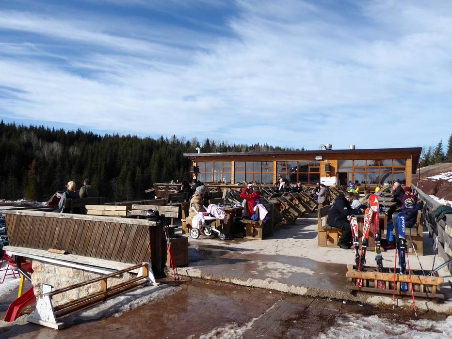 Vous pouvez terminer votre journée de ski sur la terrasse ensoleillée du Restaurant Gondola à la station de la vallée.