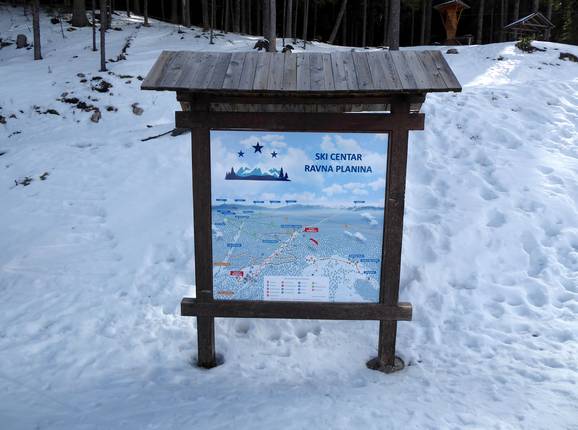 Indications de directions (plans, panneaux informatifs, signalisation) et sécurité sur le domaine skiable Ravna Planina