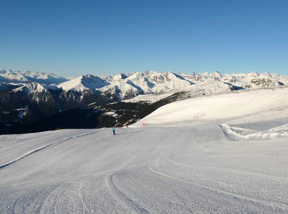 Depuis le Sattele (2460 m) par la piste Pfnatsch et la piste Plankenhorn jusqu'à la station de la vallée