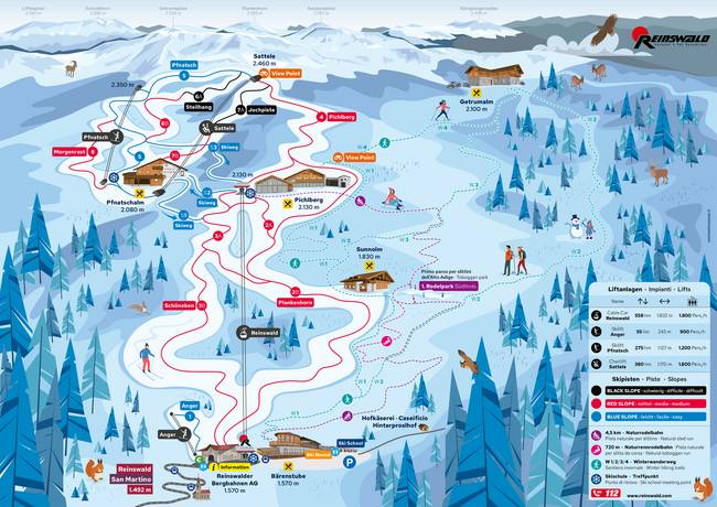 Reinswald (San Martino in Sarentino) (0,5 km), Sarntal (Sarentino) (12 km) Communes près du domaine skiable