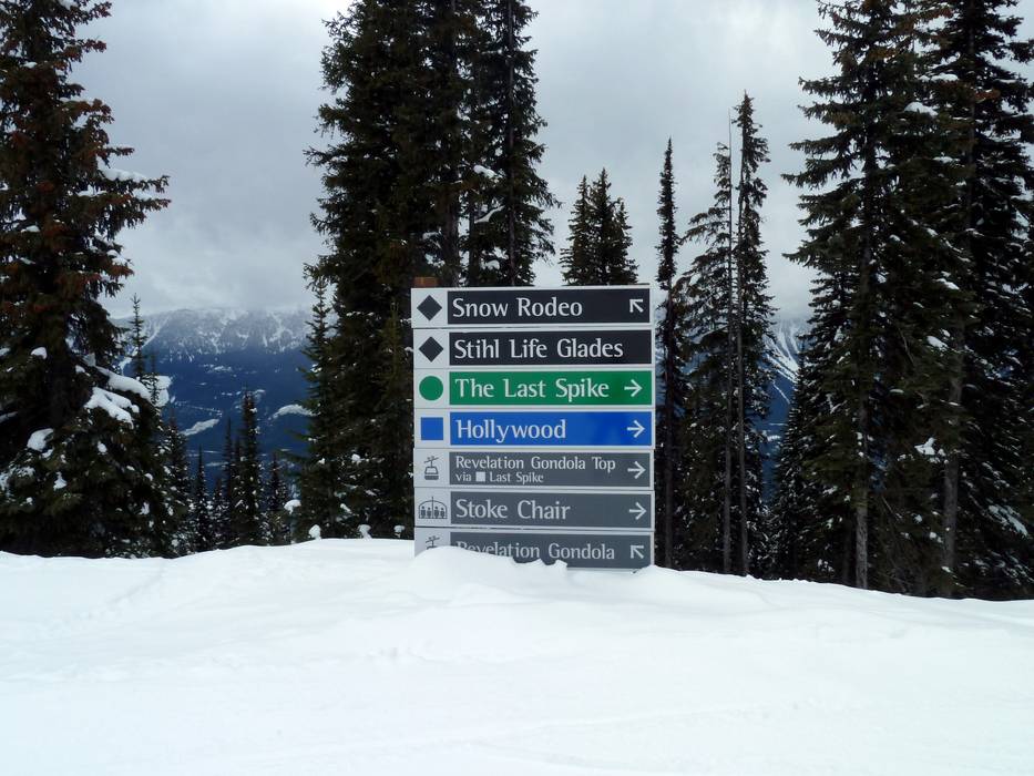 Indications de directions (plans, panneaux informatifs, signalisation) et sécurité sur le domaine skiable Revelstoke Mountain Resort