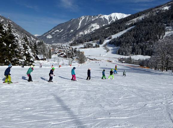 La télécabine de ski est parfaite pour les enfants et les familles. Le domaine skiable pour enfants dans la vallée offre, sur plus de 5 hectares de pistes, avec 5 remontées mécaniques, un terrain d'entraînement idéal. Trois tapis roulants, dont un de 176 m de long, un téléski à corde et un téléski à assiette desservent cinq descentes faciles différentes. Une piste à vagues, une maison de jeux, un parcours aventure, la piste tunnel Krispini et une prise en charge toute la journée garantissent variété et expériences de neige inoubliables. Avec la première télécabine de ski pour enfants d’Autriche, la Riesneralm est leader en Styrie et parmi les meilleures d’Autriche. La Magic Snow Academy y dirige une excellente école de ski avec un centre de formation. En haute saison, plus de 40 moniteurs de ski y enseignent.