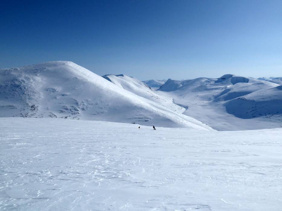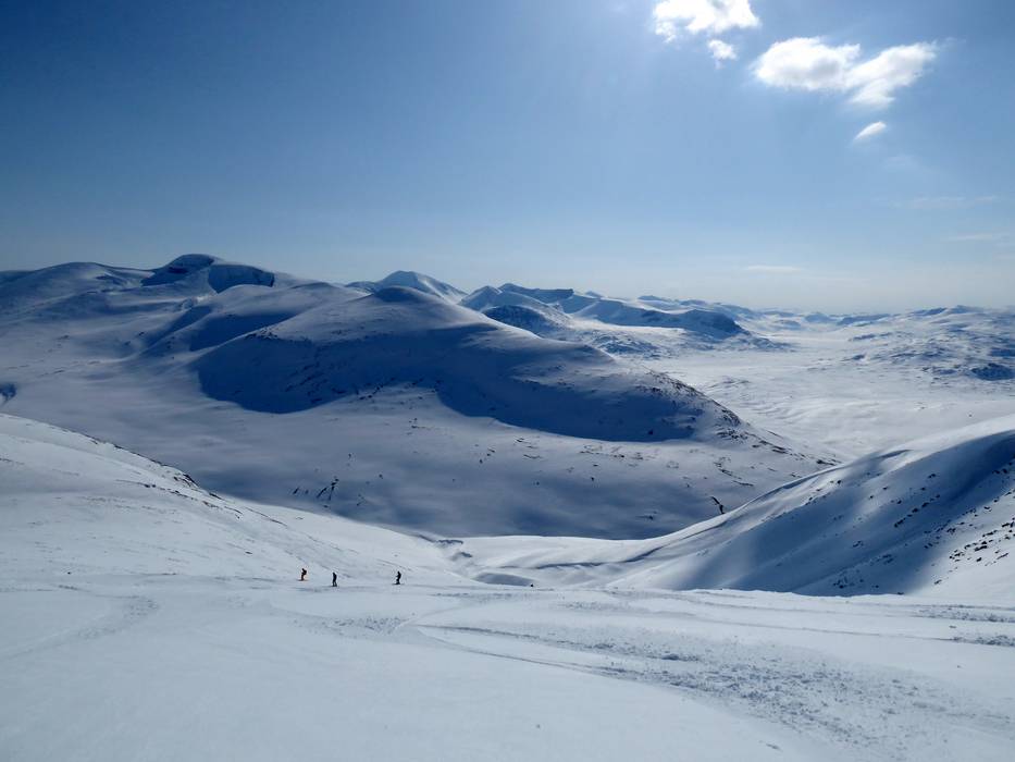 Pour les skieurs expérimentés, la face avant de Riksgränsen propose une piste exigeante ainsi que de nombreuses possibilités de hors-piste. On y trouve parfois un terrain extrême avec des rochers et des falaises. Il est même possible de faire une escapade en Norvège dans la poudreuse. Sur l’arrière, en direction de Katterjåkk, il y a également beaucoup d’espace libre pour skier. Le rêve de tout expert est l’héliski à Riksgränsen. Les tours en hélicoptère peuvent être réservés de manière relativement flexible auprès de Mountain Guide Travel à l’hôtel Riksgränsen. On s’envole alors vers les Alpes d’Abisko pour profiter de vastes pentes de poudreuse à perte de vue. Un guide conduit les amateurs de sports d’hiver en toute sécurité vers les meilleures descentes. Le panorama est grandiose et, par beau temps, on peut même apercevoir les Lofoten. L’héliski à Riksgränsen a reçu en 2021 de Skiresort la distinction "Bestes Heliskiing". Parmi les sommets desservis en hélicoptère en Suède figurent notamment : Vassitjakka 1360 m, Låkktatjocka 1440 m, Kårsatjokka 1450 m, Vouitasrita 1588 m, Nordalsfjäll 1051 m.