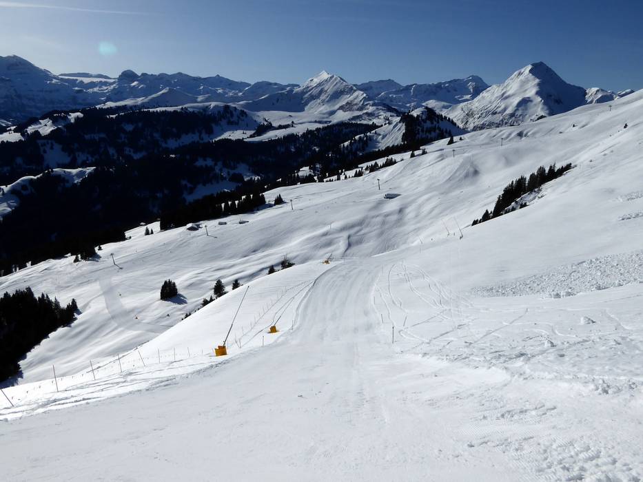 Des descentes à la vallée mènent vers les localités de St. Stephan, Zweisimmen, Saanenmöser et Schönried. À l’exception de la descente à la vallée vers St. Stephan, les pistes sont enneigées artificiellement.
