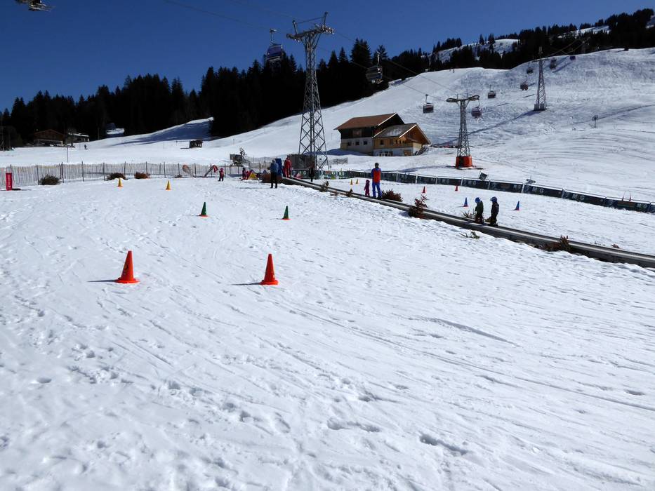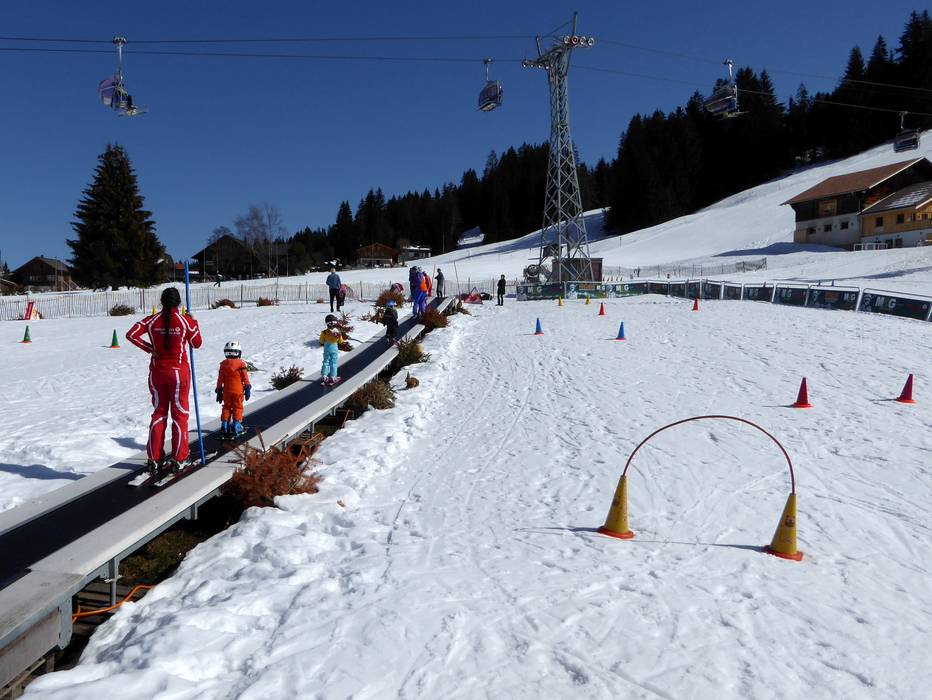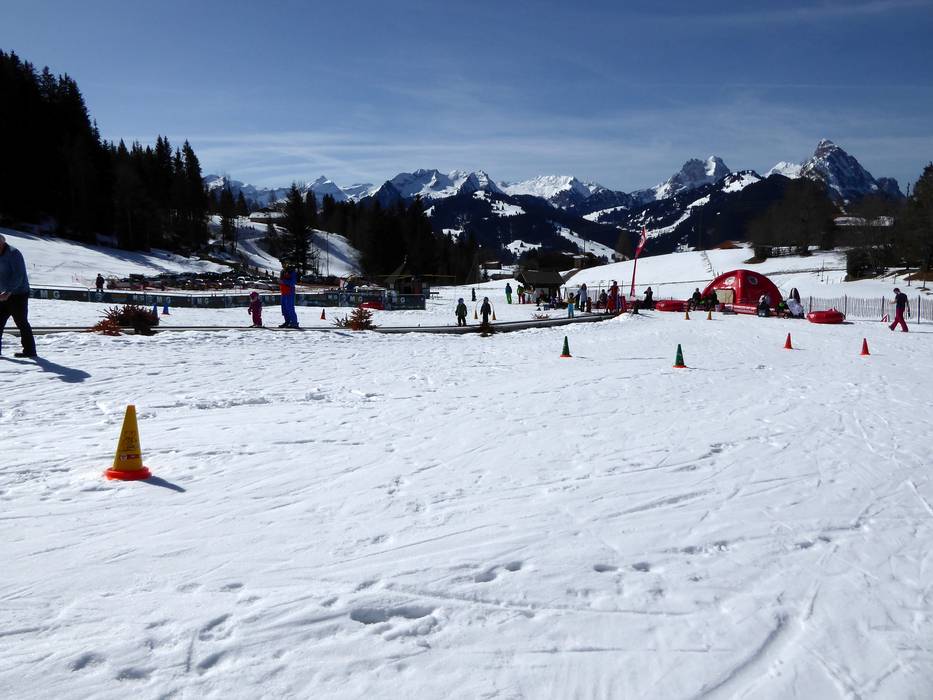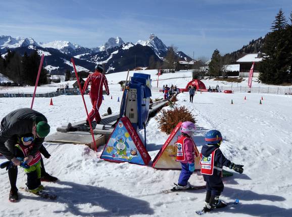 Le terrain d'entraînement à Saanenmöser est exploité par l'école de sports de neige de Saanenmöser et se trouve juste à côté de la station de départ du téléski Lätz Güetli. Un tapis roulant permet aux enfants de monter rapidement et en toute sécurité. Des personnages amusants complètent l'offre.