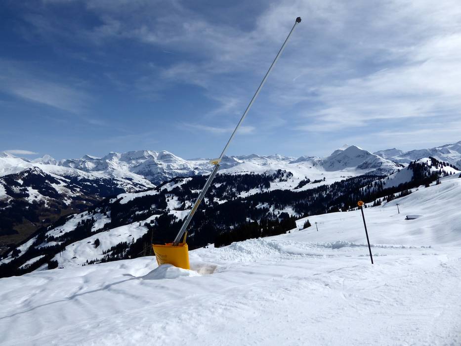 Le domaine skiable peut être considéré comme assez enneigé. Les principales pistes entre Rinderberg, Saanerslochgrat, Hornberg et Horneggli peuvent être enneigées jusqu’en vallée.