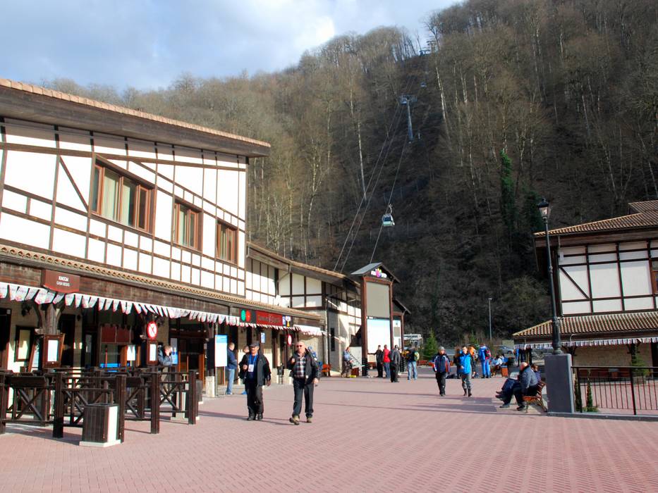 Rosa Khutor est l'une des stations de ski les plus facilement accessibles au monde. Depuis la saison 2013/14, un train express relie l'aéroport d'Adler à la station de départ de la télécabine Alpica Service (reliée par remontées mécaniques et pistes à Rosa Khutor) en seulement 25 minutes, la télécabine partant directement du quai vers la montagne. En taxi ou en voiture de location, le trajet depuis l'aéroport dure environ 40 minutes, et des bus circulent régulièrement. À la station de départ, les voitures disparaissent dans un grand parking couvert, et des places de stationnement supplémentaires sont disponibles pour les jours de forte affluence.