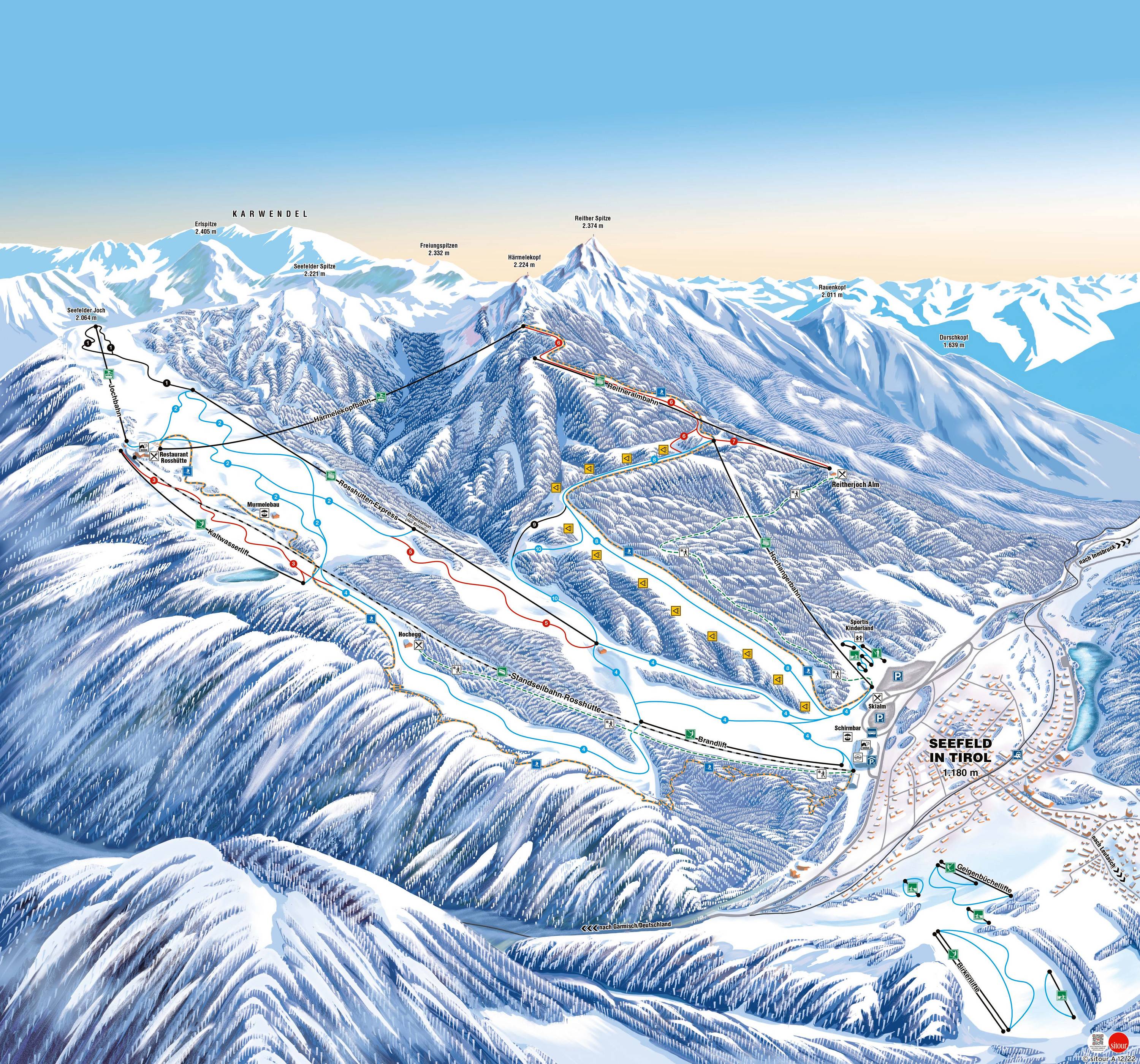 Plan des pistes Bergbahnen Rosshütte – Seefeld Saison 2025/2026