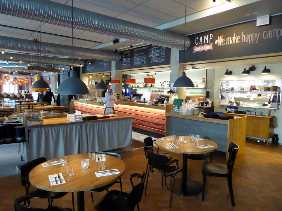 Le Camp Kitchen & Bar propose des plats internationaux et une belle sélection de vins. Du burger au saumon en passant par le renne, tout est proposé. Des menus pour enfants sont également servis.