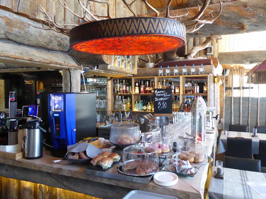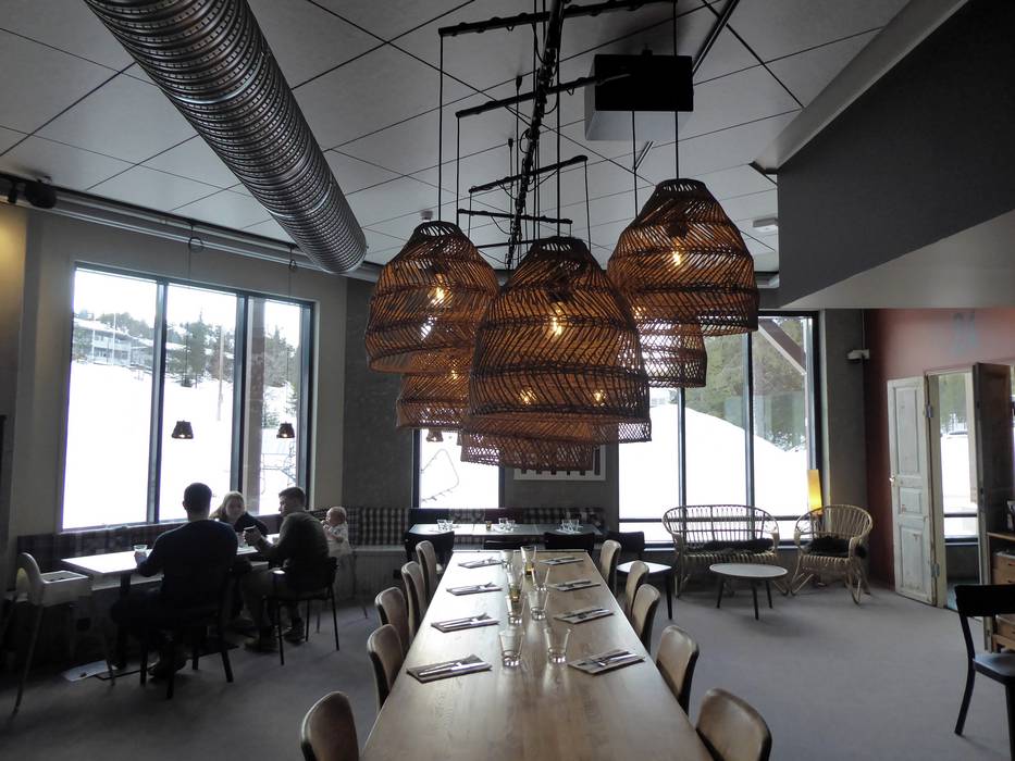 Le SkiBistro Ruka propose une cheminée chaleureuse et un bar convivial. Par beau temps, la terrasse ensoleillée vous invite à la détente.