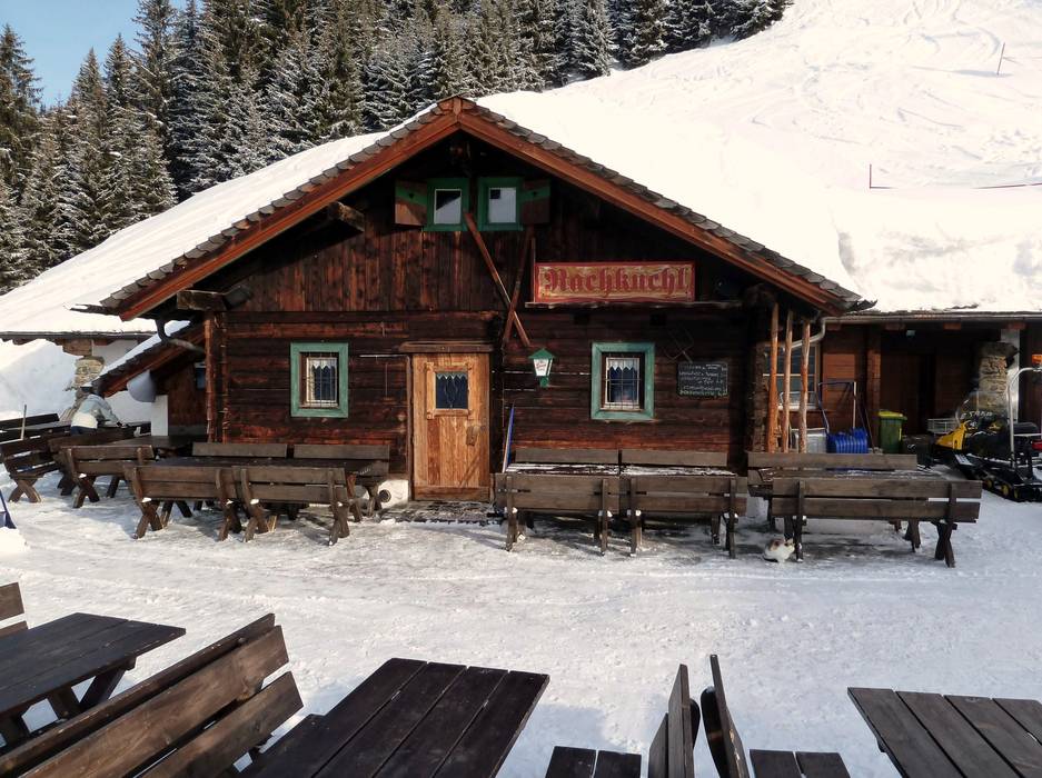 La Rachkuchl est une petite cabane rustique avec un poêle en faïence et des spécialités salzbourgeoises. Par beau temps, vous pouvez également vous asseoir sur la terrasse ensoleillée et profiter du panorama.