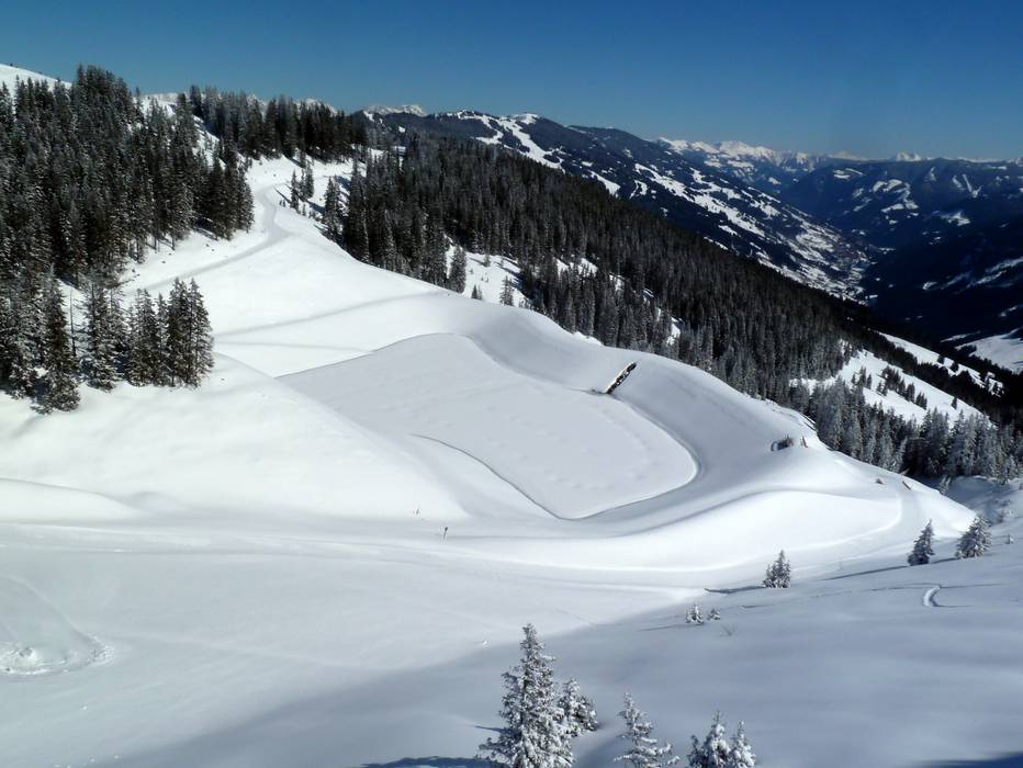 La nouvelle piste Reiterkogel-Vierstadlalm de 3,5 km surmonte un dénivelé de 780 mètres et relie Fieberbrunn à Saalbach Hinterglemm.2014/2015