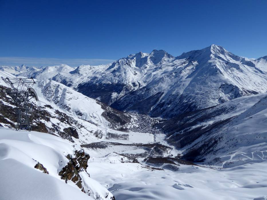 Saas-Fee est le plus grand domaine skiable de la vallée de Saas et fait partie des dix plus grands domaines skiables du Valais. Il s'étend de Plattjen à Morenia et Mittelallalin jusqu'à Längfluh et Spielboden. On y profite d'une vue à couper le souffle sur 18 sommets de plus de 4000 mètres et le dénivelé de près de 1800 m est impressionnant.