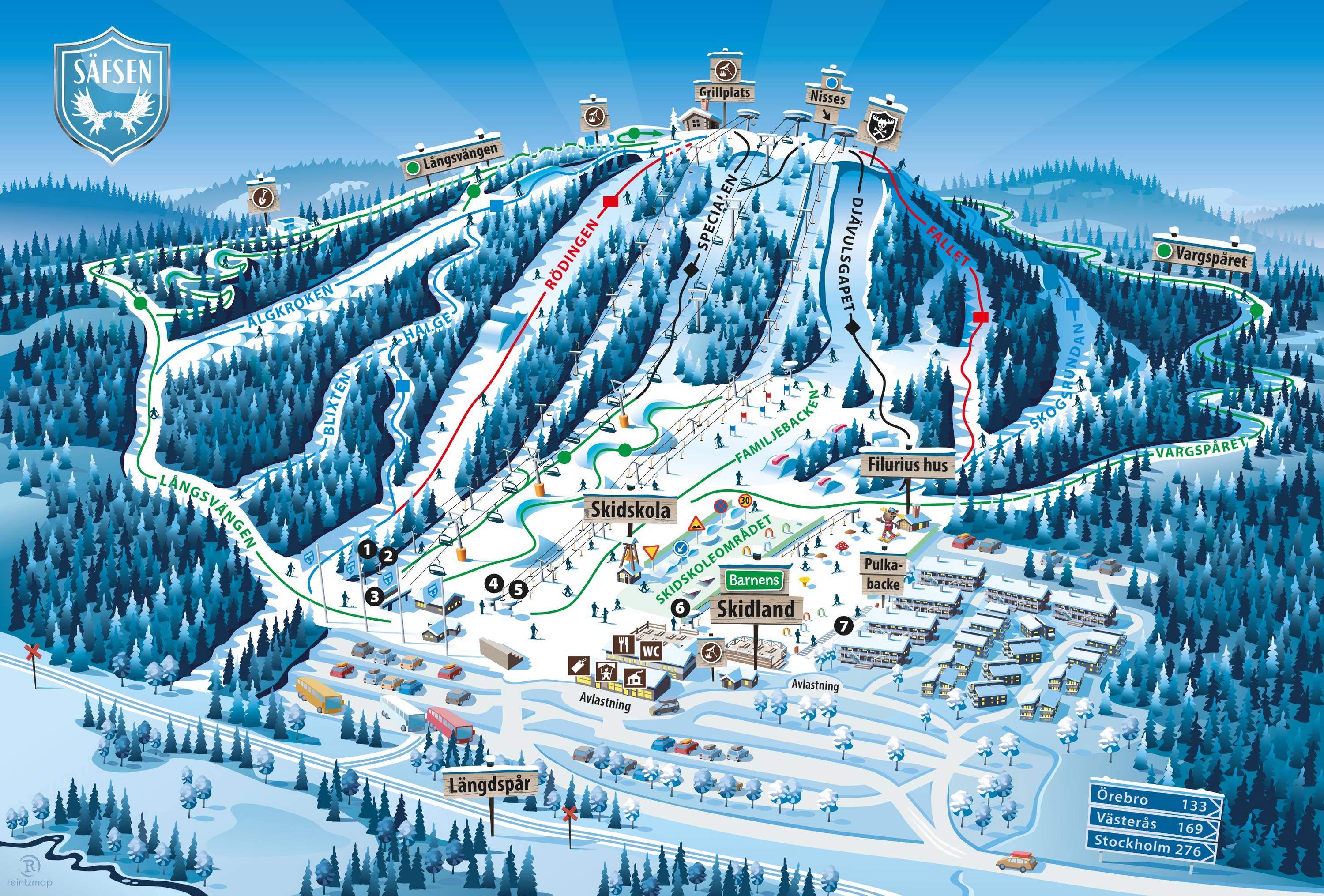 Säfsen (0,2 km), Säfsbyn (4 km), Fredriksberg (4 km) Communes près du domaine skiable