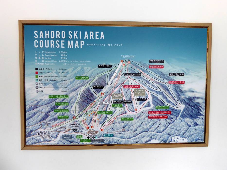 Le plan des pistes représente très bien le domaine skiable de Sahoro. Toutes les informations importantes et les horaires y sont indiqués. On peut notamment voir quelles pistes sont ouvertes pour le ski nocturne. De plus, la plupart des informations sont souvent disponibles en japonais et en anglais. Au verso, on trouve d'autres informations utiles sur les tarifs et la location de skis.