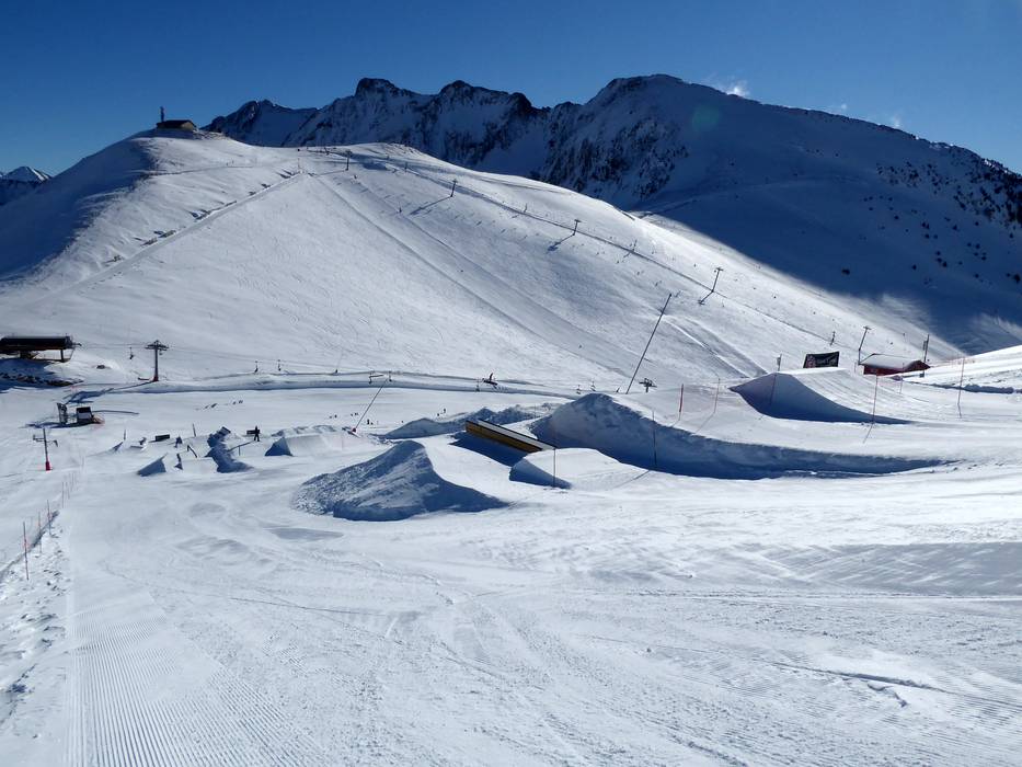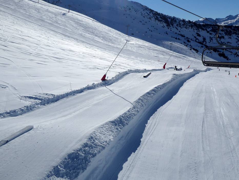 Le domaine skiable de Saint-Lary-Soulan propose un beau snowpark au Col du Portet.