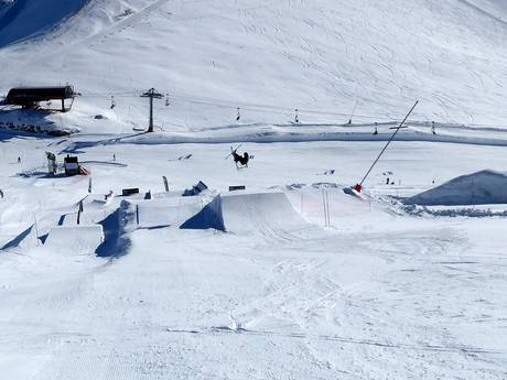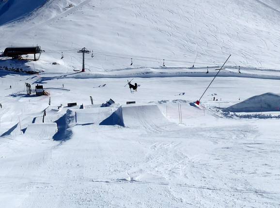 Le snowpark attrayant se situe à environ 2200 m au Col du Portet et est desservi par un téléski dédié. Le parc, exposé en plein soleil, est fraîchement shapé chaque jour et propose différents modules pour tous les niveaux. À l’extrémité inférieure du snowpark commence le boardercross facile "De Le Rue's Line".