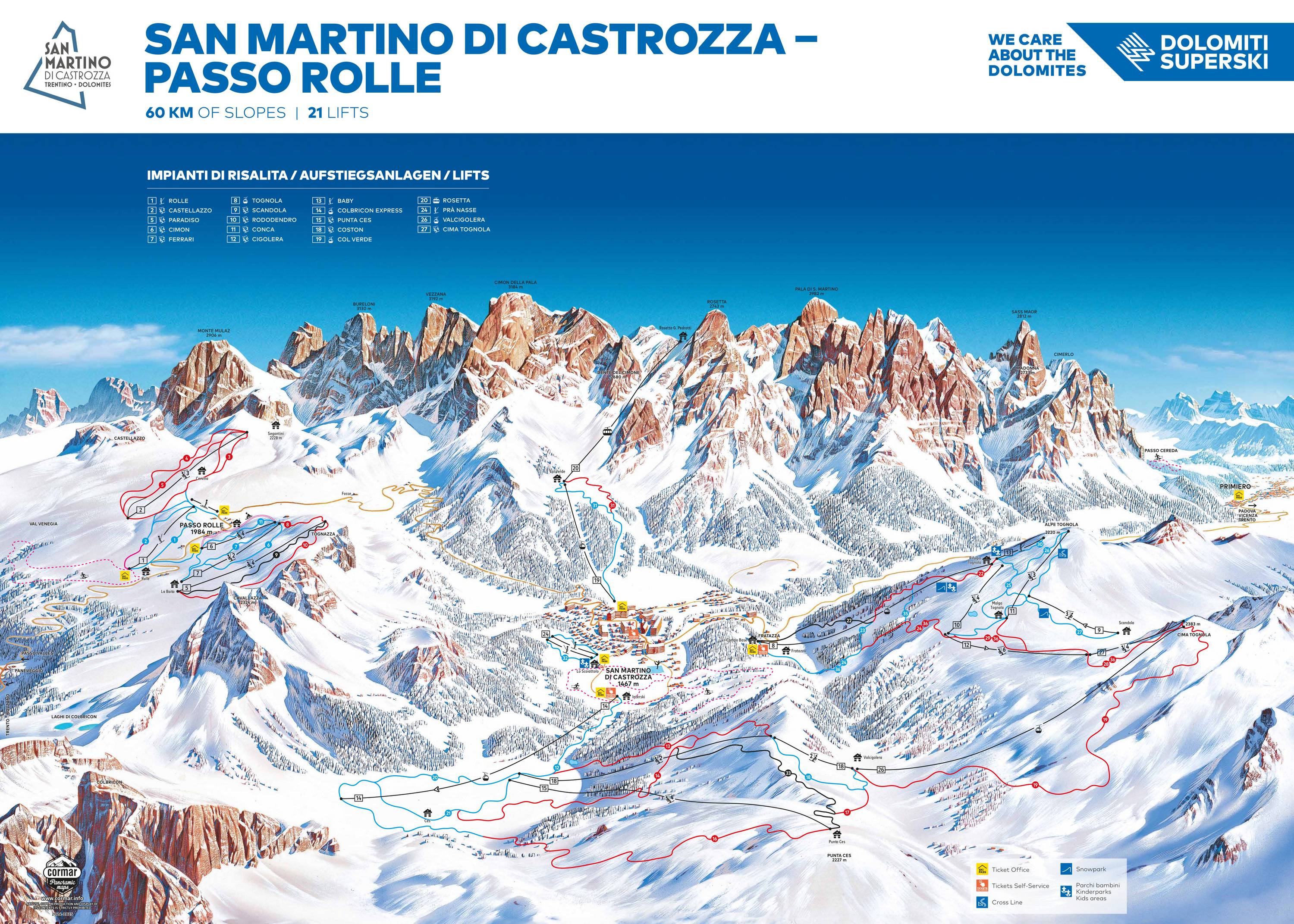 Plan des pistes San Martino di Castrozza & Passo Rolle Saison 2025/2026