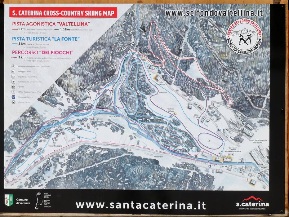 Le centre de ski de fond Santa Caterina Valfurva propose plusieurs pistes de ski de fond à couper le souffle. Les pistes, situées à environ 1800 mètres d'altitude et garanties enneigées, couvrent tous les niveaux de difficulté. Ainsi, aussi bien les débutants que les fondeurs expérimentés y trouvent leur compte sur les circuits en boucle. Des compétitions internationales et des épreuves de Coupe du monde y sont également organisées. Une école de ski de fond est à disposition. Le centre de ski de fond offre un grand confort avec des vestiaires, une consigne avec casiers, des toilettes publiques et une restauration à proximité.