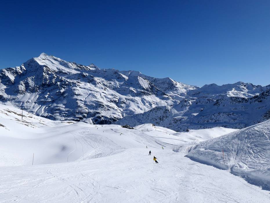Piste de rêve depuis le Valle dell'Alpe en direction de Santa Caterina. La vue sur le Pizzo Tresero (3594 m) est impressionnante. - Vallalpe