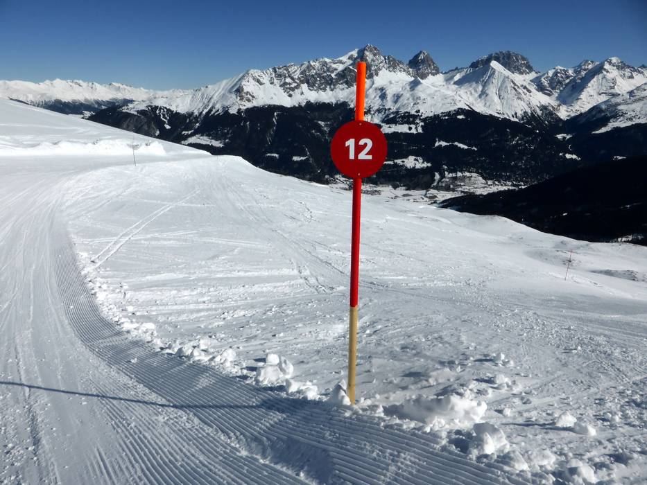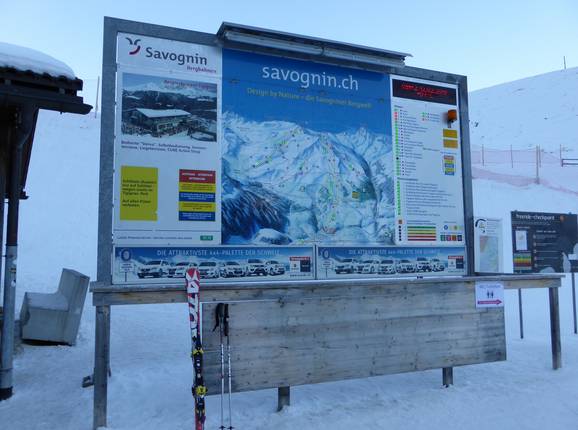 Indications de directions (plans, panneaux informatifs, signalisation) et sécurité sur le domaine skiable Savognin