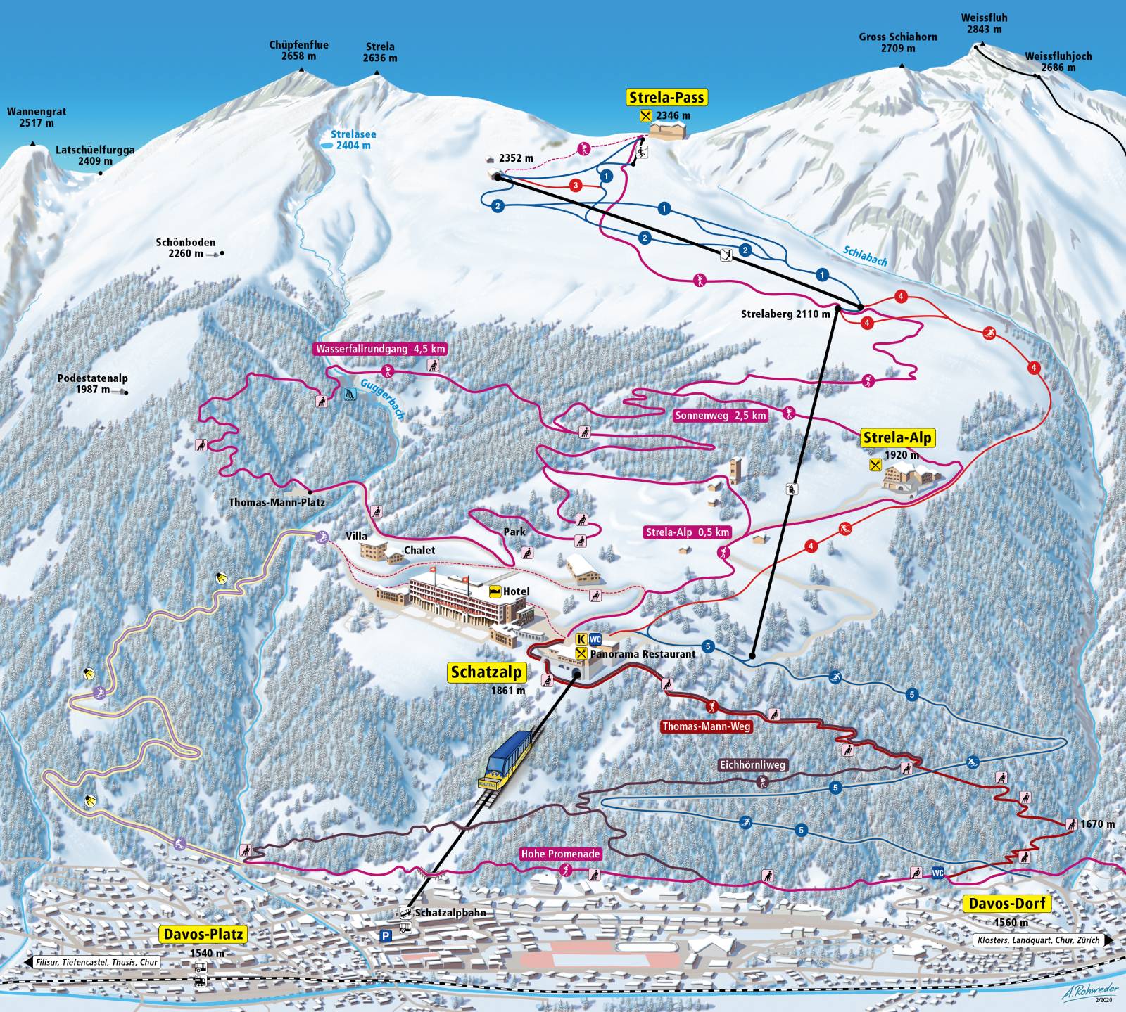 Plan des pistes Schatzalp/Strela Saison 2025/2026