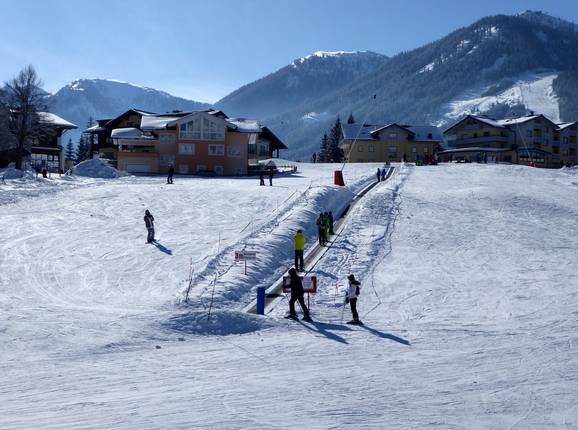 Pour les débutants, il est recommandé de commencer à Rohrmoos sur la Hochwurzen, où un tapis roulant, deux téléskis et un télésiège 6 places desservent des pistes faciles sur le plateau de Rohrmoos. Dans la partie supérieure de la Hochwurzen, sur la Planai et sur la Reiteralm, il n’y a que très peu de pistes faciles. Au Hauser Kaibling, les télésièges Alm 6er, Kaibling 6er et les Höfi-Express desservent des pistes faciles. Cependant, pour redescendre dans la vallée, il est également préférable pour les débutants d’emprunter la télécabine.