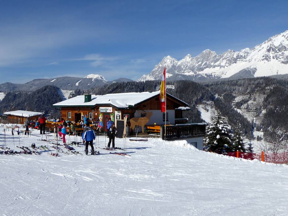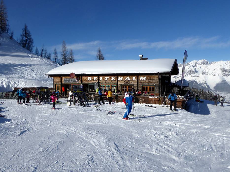 Construite avec le bois d’anciennes fermes pongaues, la Hochalm offre, en un point central du domaine skiable de la Reiteralm, tout ce qu’il faut pour une pause déjeuner réussie. Dans un total de quatre salles ou sur la terrasse ensoleillée pouvant accueillir 250 personnes, les amateurs de sports d’hiver peuvent pleinement en profiter.