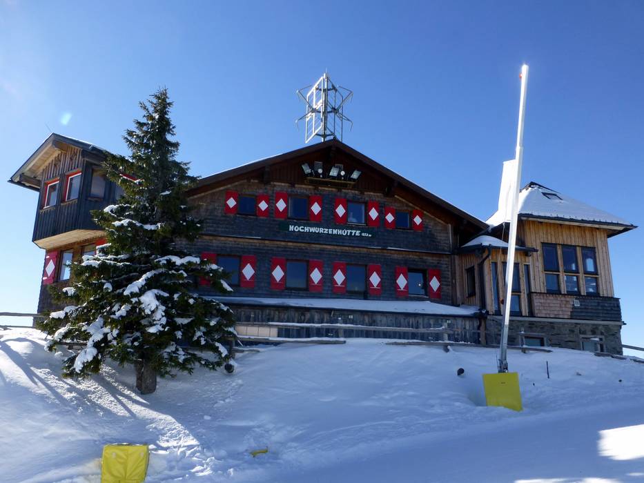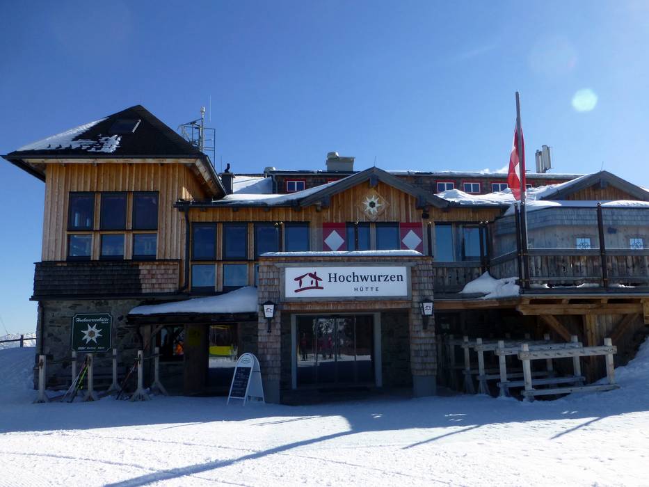 Une vue panoramique de rêve s’offre depuis la terrasse ensoleillée de la Hochwurzenhütte. En cas de mauvais temps, la cuisine traditionnelle et généreuse peut également être appréciée dans la salle à manger rustique.