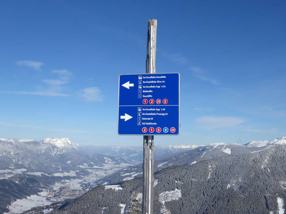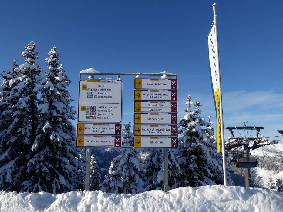 Indications de directions (plans, panneaux informatifs, signalisation) et sécurité sur le domaine skiable Schladming – Planai/Hochwurzen/Hauser Kaibling/Reiteralm (4-Berge-Skischaukel)