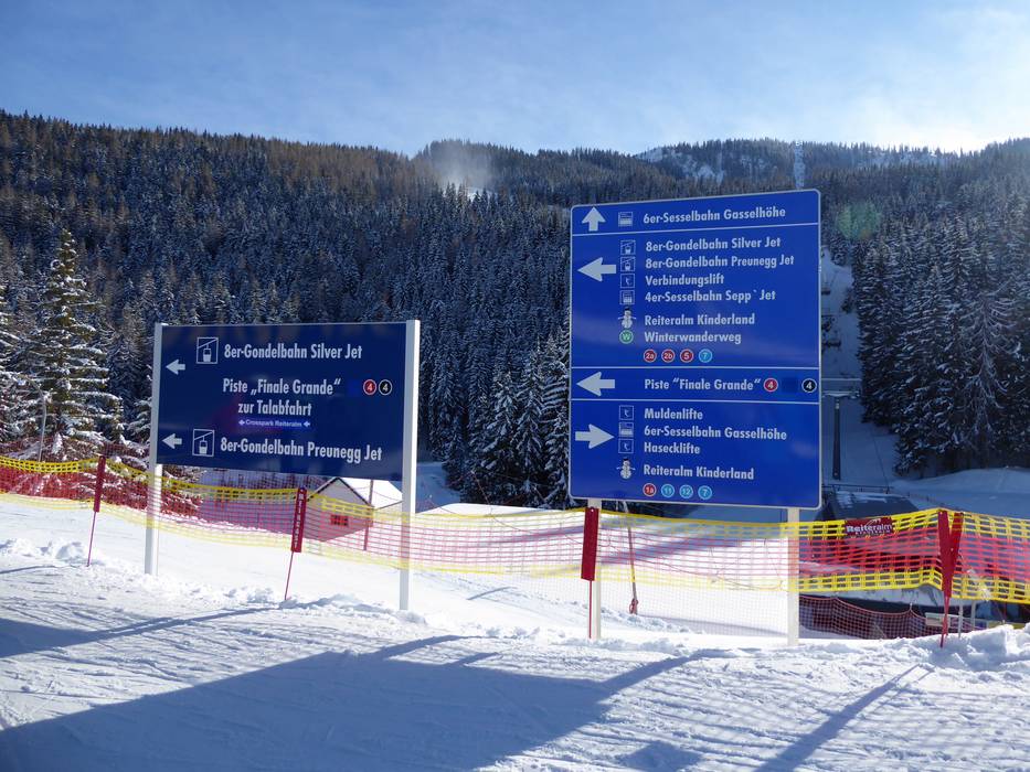 Dans toutes les parties du domaine skiable, des affichages en temps réel fournissent des informations sur les remontées mécaniques et pistes ouvertes. Sur les pistes, les amateurs de sports d'hiver trouvent à chaque intersection et point de jonction de nombreux panneaux de signalisation qui indiquent clairement le chemin.