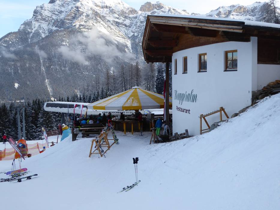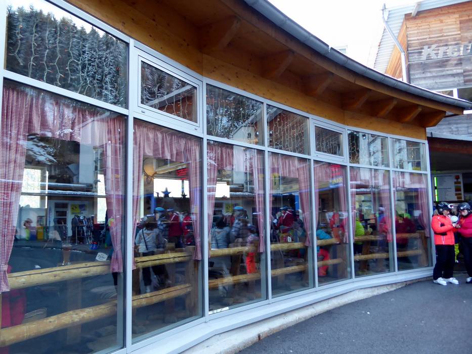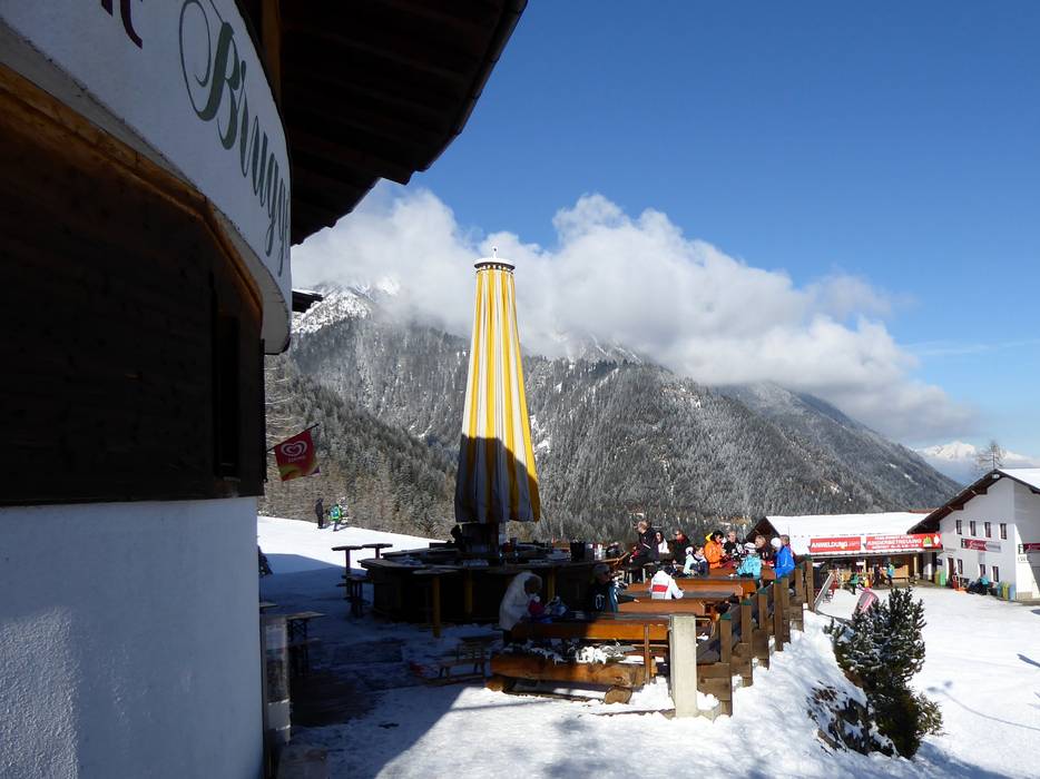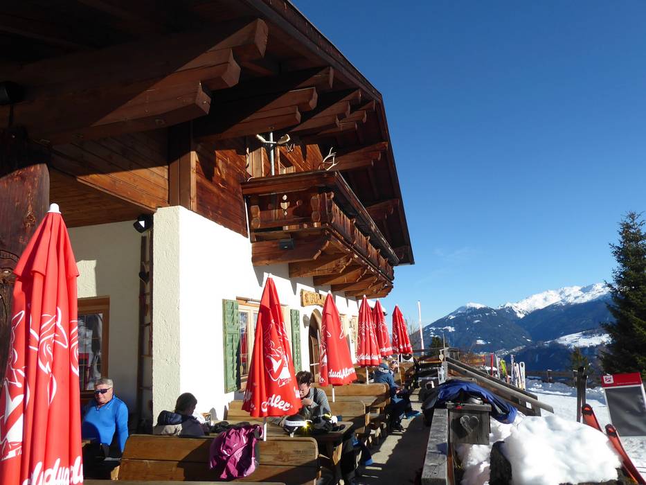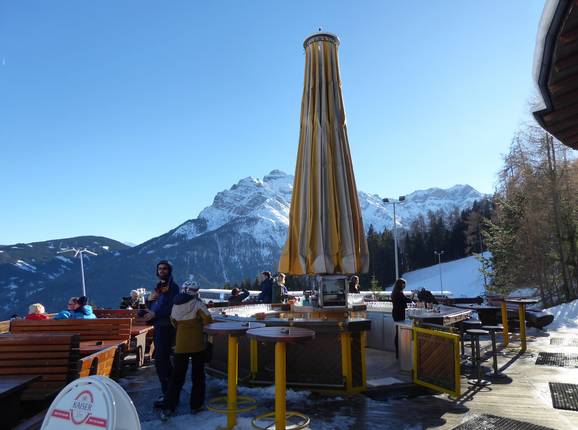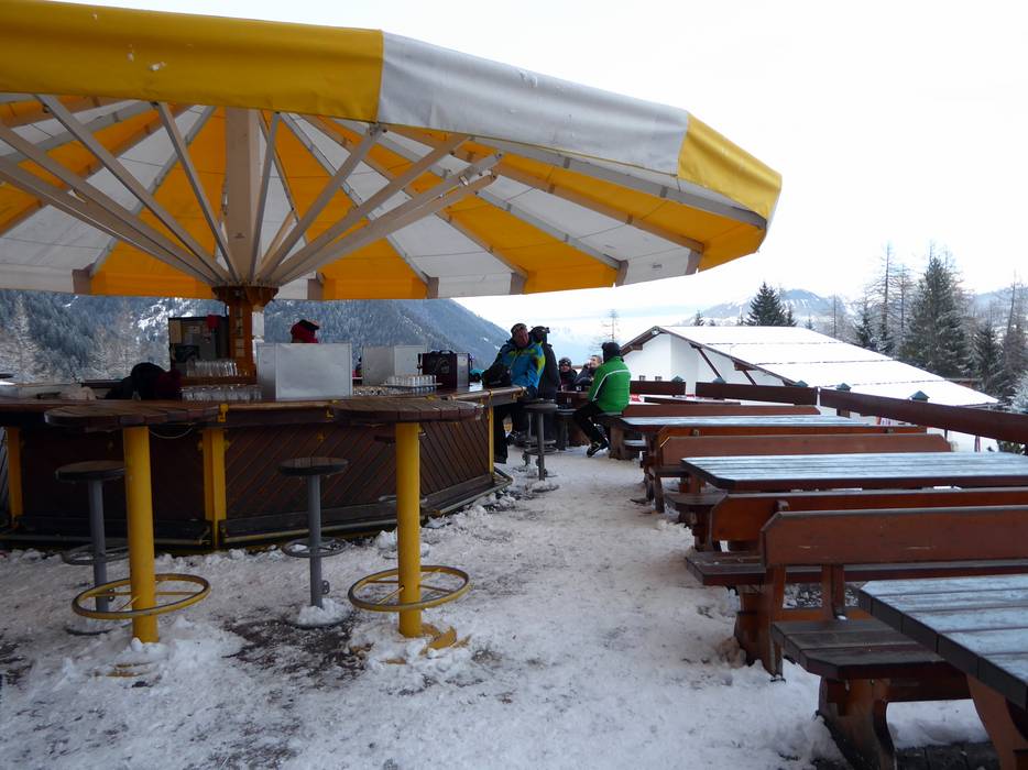 Par beau temps, un lieu d'après-ski avec une vue panoramique magnifique. Sert également de salle d'attente conviviale pour le Kinderland voisin.