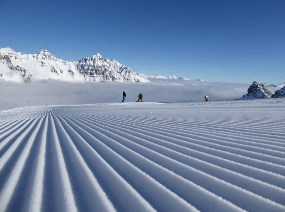 Toutes les pistes sont soigneusement préparées chaque jour. Il est particulièrement remarquable que la qualité des pistes soit excellente, surtout dans la partie supérieure du domaine skiable au Sennjoch.
