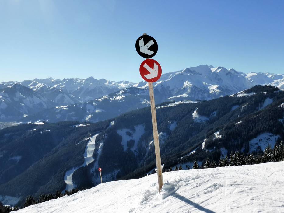 Indications de directions (plans, panneaux informatifs, signalisation) et sécurité sur le domaine skiable Schmittenhöhe – Zell am See