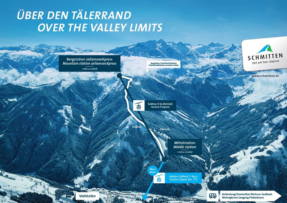 La nouvelle télécabine 10 places zellamseeXpress I assure la liaison tant attendue de Viehhofen dans la vallée de Glemmtal avec la Schmittenhöhe. Sans changement à la station intermédiaire, les deux remontées mécaniques modernes zellamseeXpress I et zellamseeXpress II transportent confortablement leurs passagers vers le domaine skiable.