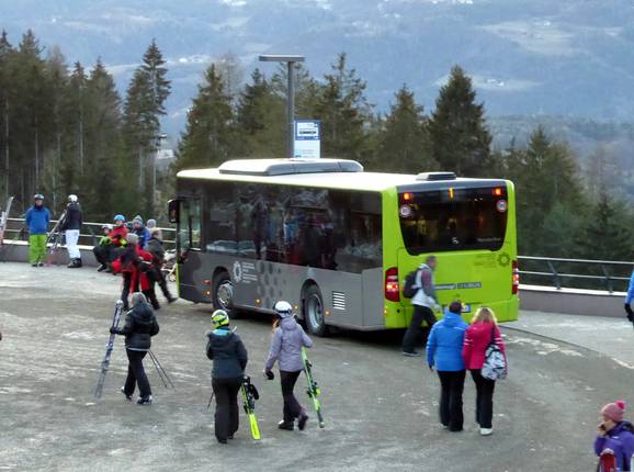 - Des bus de ski desservent principalement la station Seiser Alm Bahn à Siusi depuis Fiè allo Sciliar, Siusi allo Sciliar et Castelrotto. Sur l’Alpe di Siusi, le bus Almbus circule entre Compatsch et Saltria. Depuis Saltria, un bus payant permet de rejoindre Monte Pana pour accéder à la Sella Ronda. Dans la vallée de Gardena, il existe également des bus de ski.
