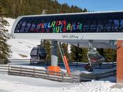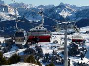 Téléphérique monocâble composé de sièges à 6 places et de cabines à 8 places